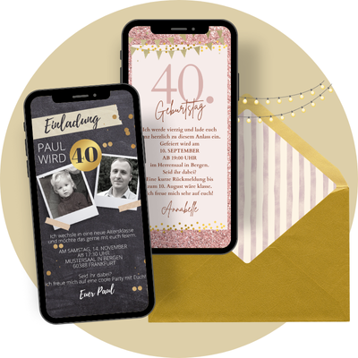 Hier findest du eine tolle Auswahl an Geburtstagseinladungen für Erwachsene oder für Geburtstage zum Kindergeburtstag Eine digitale Geburtstagseinladung kannst du einfach als eCard versenden. Egal, ob klassisch oder modern, es gibt für jeden Anlass die richtige digitale Geburtstagseinladung für dich. Alle Einladungskarten zum Geburtstag lassen sich ganz leicht anpassen und können mit deinem Smartphone z. B. mit WhatsApp versendet werden. Und dabei sparst du noch jede Menge Papier ein - ist das nicht unglaublich toll?