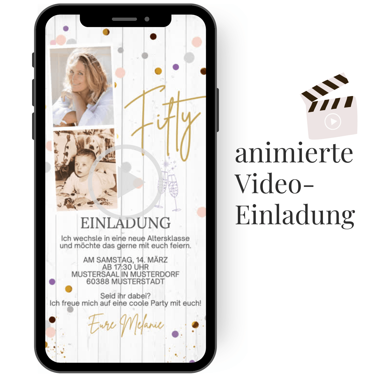 Animierte Einladung - Fifty Konfetti